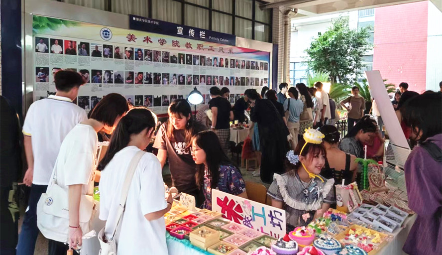 4月19日,由创新创业学院指导,学生工作处、学生就业指导处、团委主办,美术学院承办的“砚园市集·毕业季”在美术学院一楼大厅举办。本次活动结合美术学院毕业设计展及就业招聘会,从全校招募作品现场展示和售卖,旨在激励学生充分发挥专业优势,进行原创产品开发及市场对接。