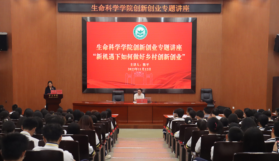 11月12日,生命科学学院成功举办创新创业专题讲座,邀请广东创旅城乡产业规划与振兴研究院院长陈平主讲。生命科学学院副院长李赛男、党委副书记邱兴和、园林与风景园林系主任钟国庆、创新创业学院甘鸣老师等师生共计400余人参加讲座活动。