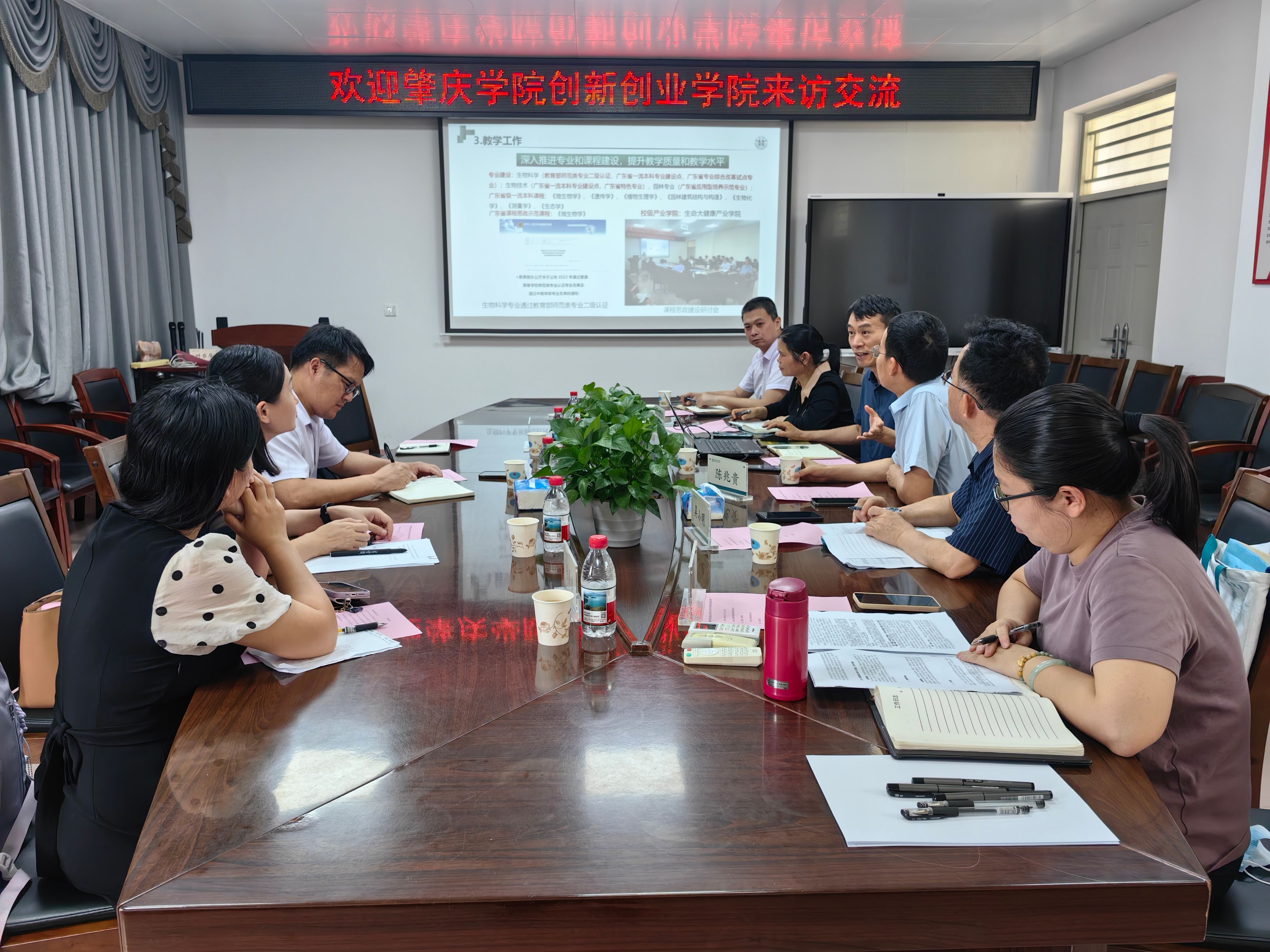 会后,唐文武一行来到惠州学院生命科学学院交流,惠州学院生命科学学院院长周立斌介绍学院办学情况和创新创业工作,双方就生物农业类双创项目培育等展开研讨。
