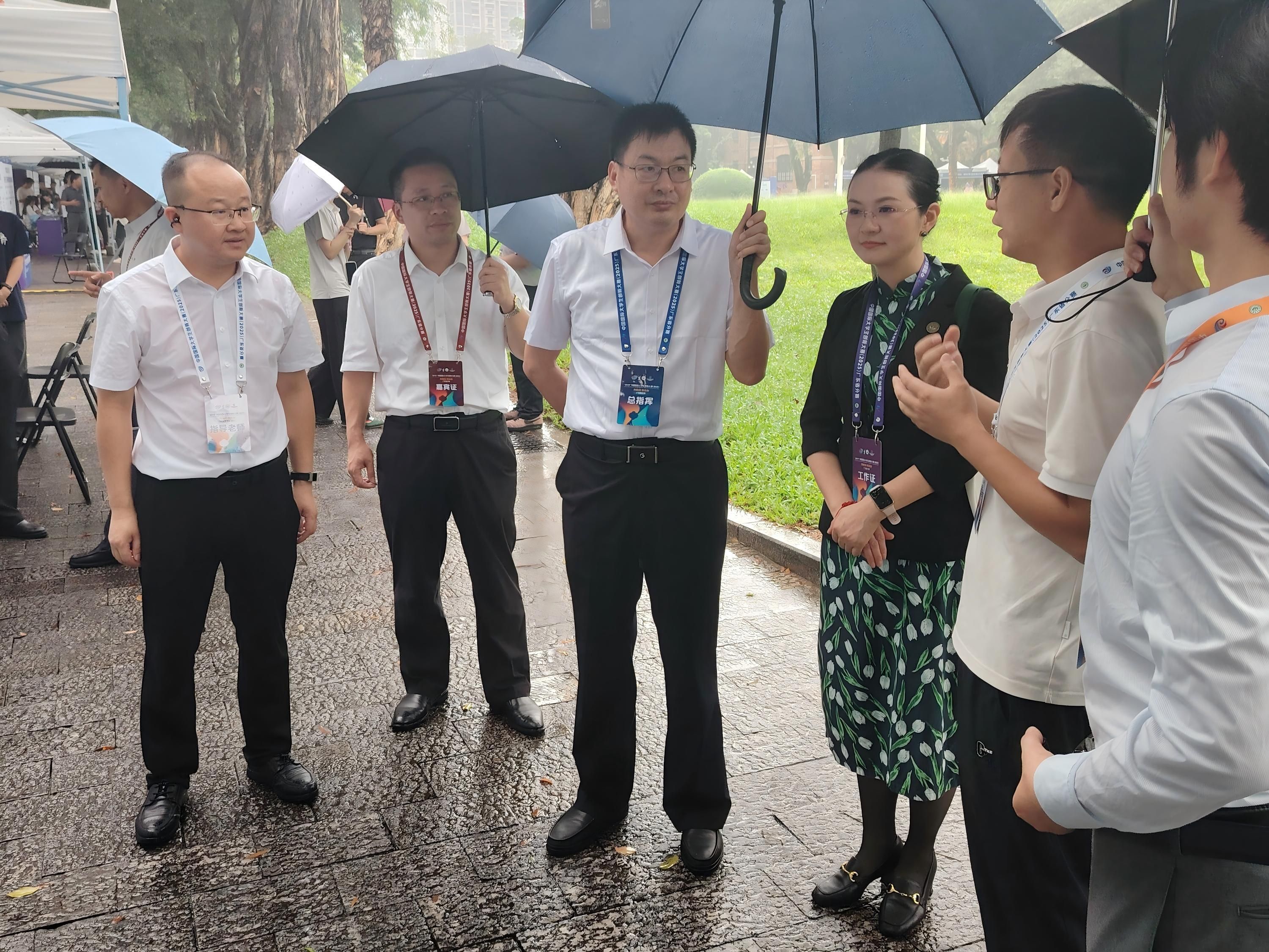 大赛项目对接洽谈活动期间,广东省省委教育工委委员,省教育厅党组成员、副厅长程大欣,中山大学党委副书记张琪在省教育厅就业创业处负责人等陪同下驻足taptap点点体育创新创业成果展位,与创新创业学院负责人,项目指导教师,学生团队深入交流。程大欣寄语肇庆学院师生继续发挥自身优势,培育出更多优秀创新创业成果,为社会输送更多创新型人才,推动创新创业事业蓬勃发展。