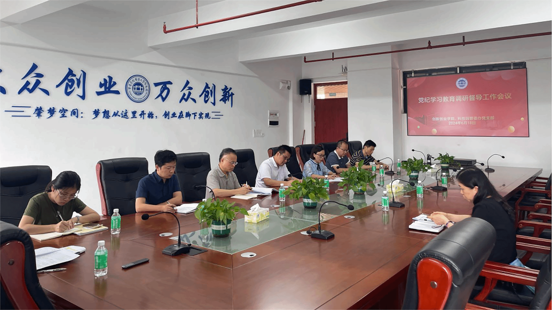 6月18日,机关党委党纪学习教育工作专班成员到创新创业学院、科技园管委办党支部进行党纪学习教育全覆盖调研督导,党支部全体党员参加工作座谈。通过听取党支部党纪学习教育开展情况汇报、与支部委员和党员代表进行谈心谈话、现场查阅“三会一课”记录本和党纪学习教育工作台账等方式,对党支部党纪学习教育情况进行调研督导,现场发现并指导纠正问题,切实推动机关党建工作与党纪学习教育相融共促、一体落实。
